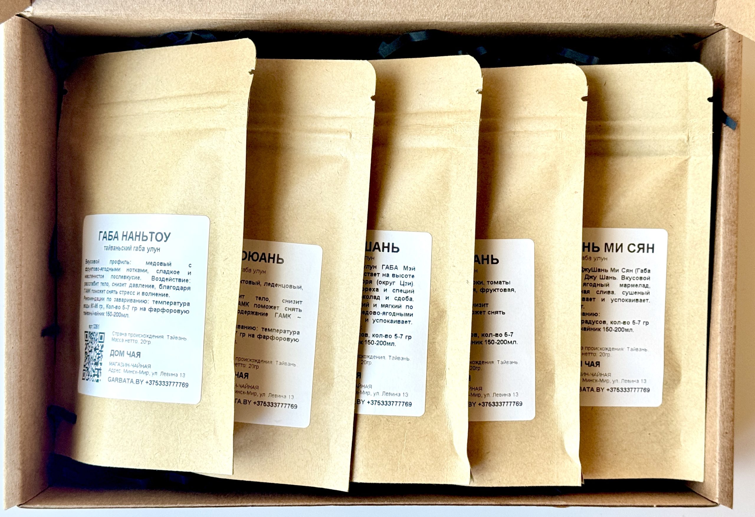 В набор База входят 5 сортов Габа-чая по 20 гр: