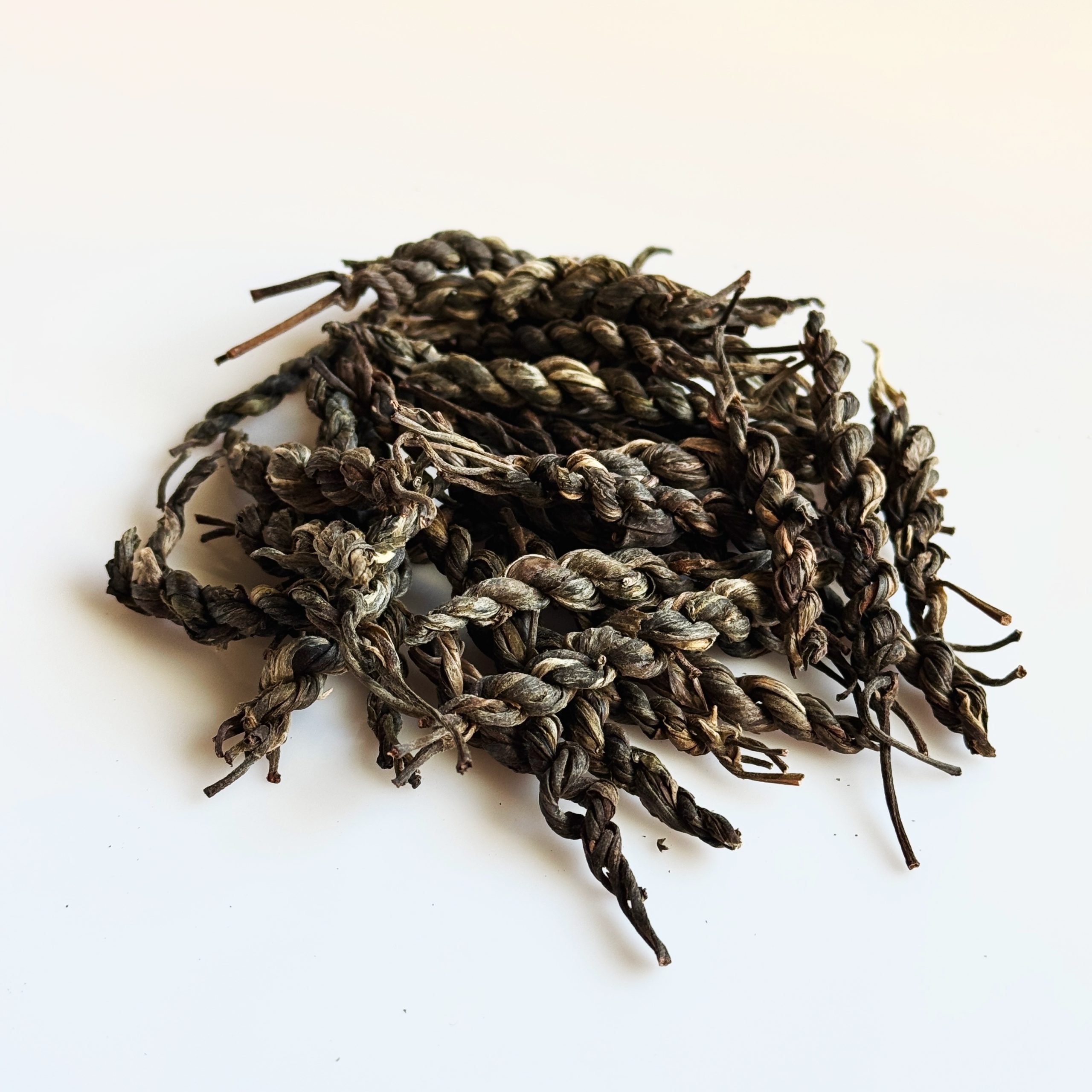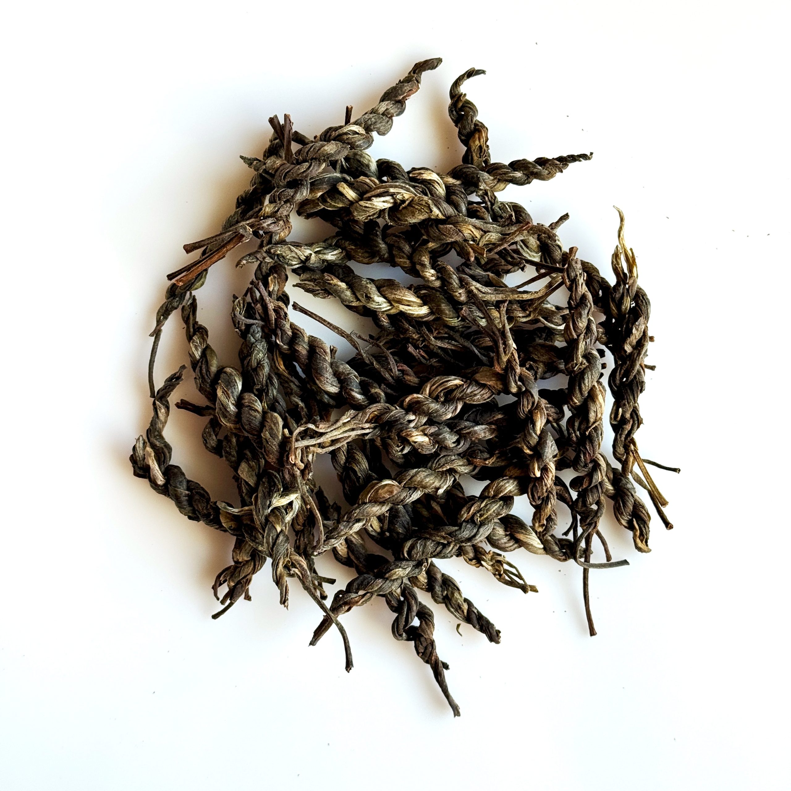 Необычно спрессованный чай из сырья 2019 года. Плотная «косичка» требует правильного заваривания: аккуратно разделите её для проливов или используйте целиком для варки.